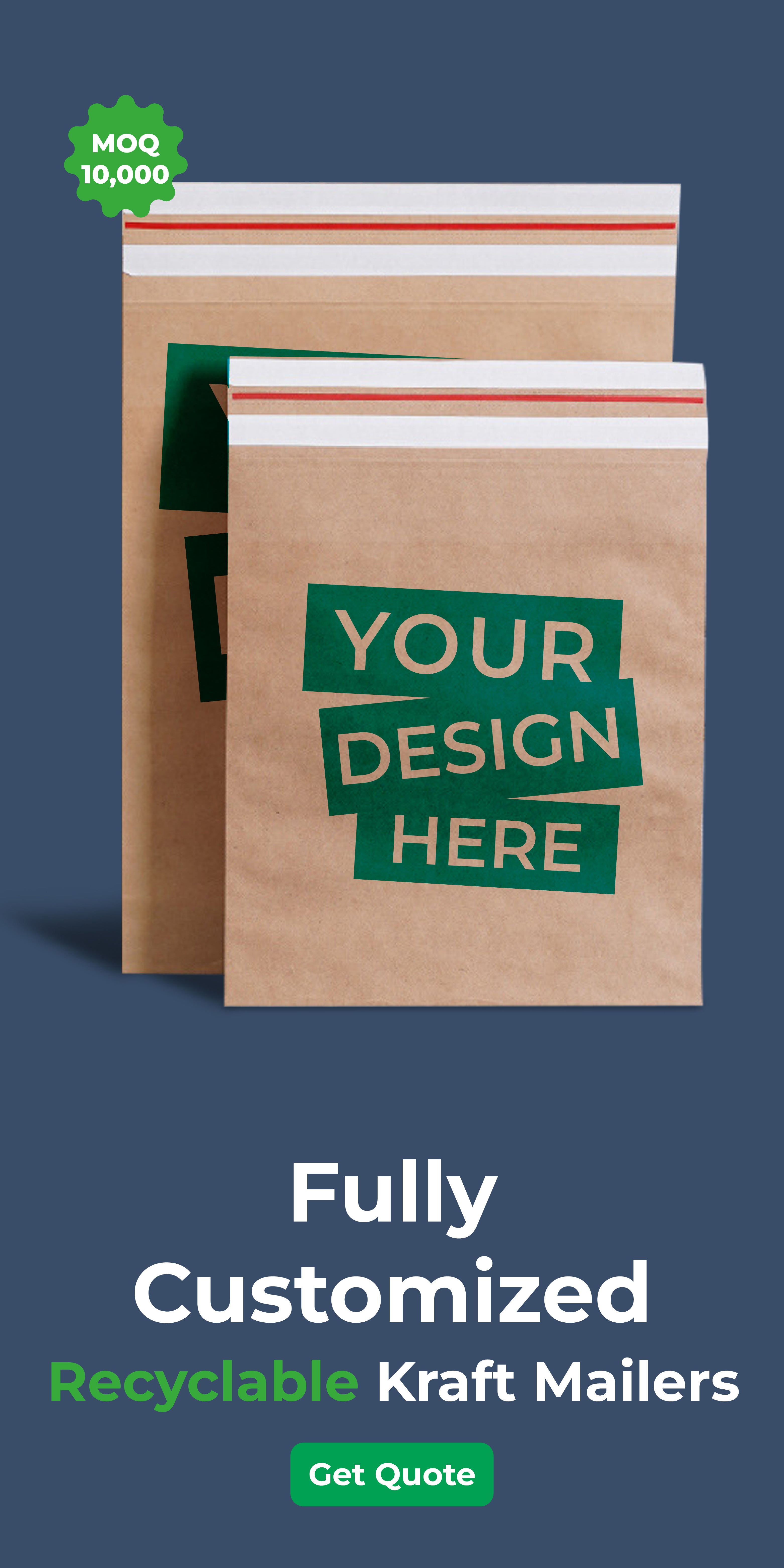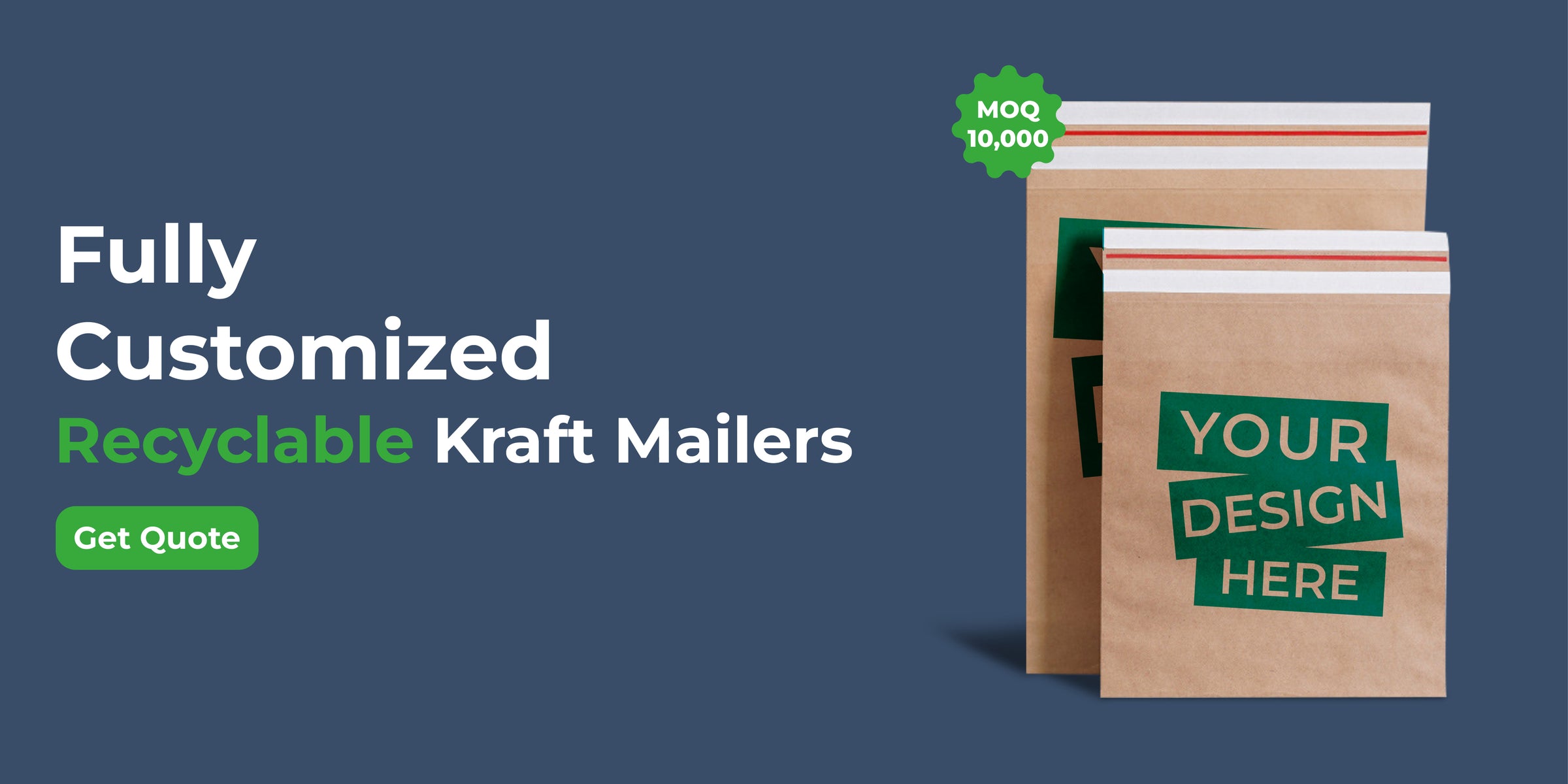 Eco-friendly Kraft Mailers are customized using water/plant-based ink.v