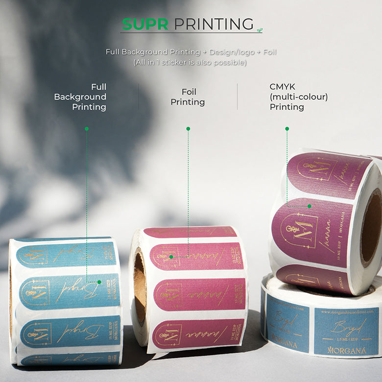 | Printing Type | CMYK - Any background colour + logo/design colour + foil (all in 1 sticker also possible) + Embossed |